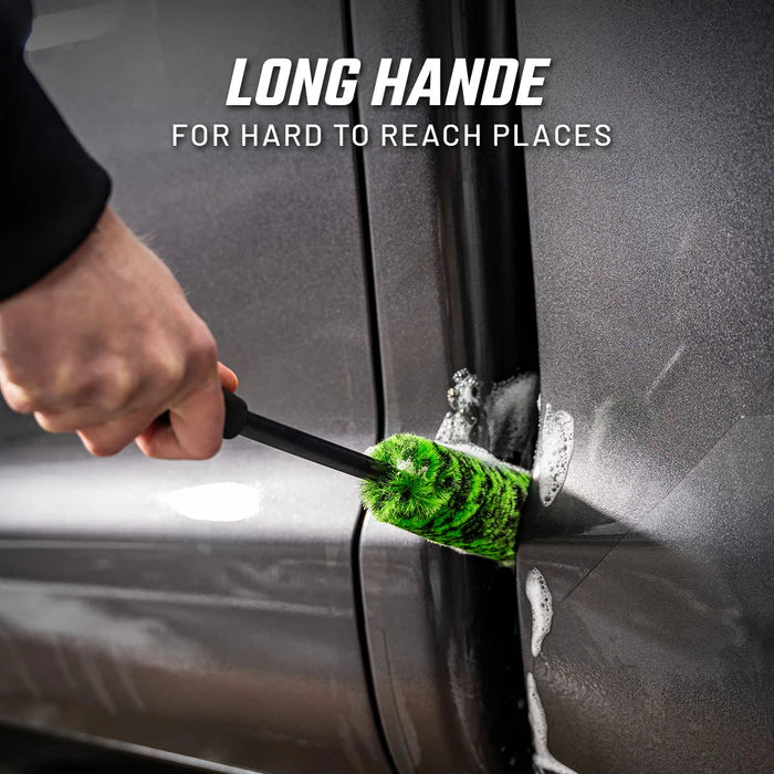 The Slick Products Non-Scratch Wheel Brush is engineered to make wheel cleaning safe, efficient, and scratch-free. With a 15″ handle for leverage and reach and a dense 6″ brush head, it gets deep into wheel faces, and barrels, without damaging finishes. The soft, flagged bristles lift brake dust and grime while being gentle on clear coat, painted surfaces, chrome, and aluminum. Comfortable grip and balanced design make fast, safe detailing easy.