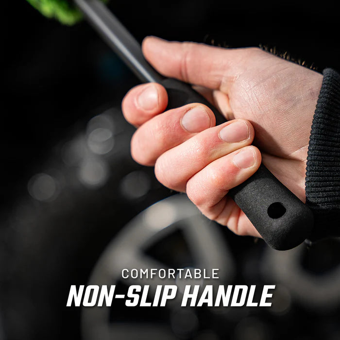 Soft, flagged bristles reach deep into wheel surfaces and crevices to lift brake dust and grime without scratching paint, clear coat, or polished metal finishes. Clean with confidence.