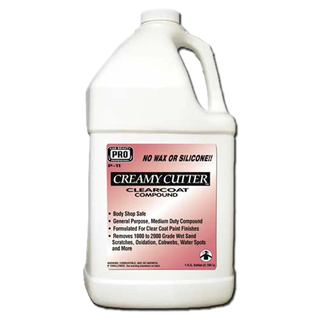 Creamy Cutter™ is a general purpose, medium duty compound for use on base coat/clear coat paint systems. Removes 1000-2000# wet sand scratches, medium oxidation, cobwebs, blemishes, water spots and more. Leaves a clean, glossy surface, ready for polishing or final finishing. Safe for all types of paint finishes. Sweet cherry fragrance. Contains no wax or silicone. Follow with a PRO® polish or wax to increase gloss and protection. VOC compliant.